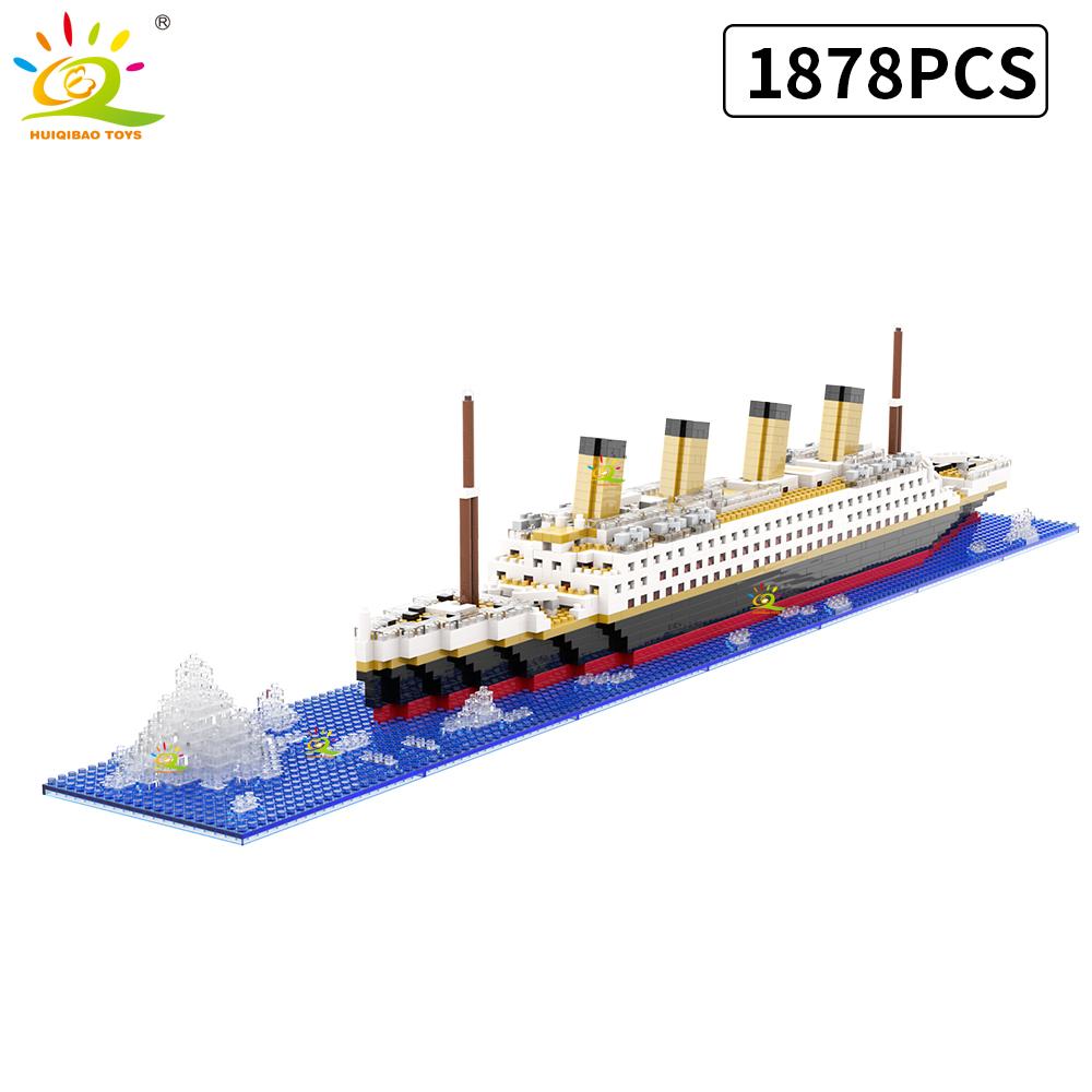 MOC Titanic Giant Ocean Iceberg Adventure Navigation Boat Small Particle Building Blocks Kid Micro Bricks Toy for Adult