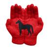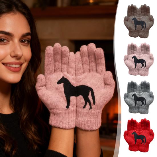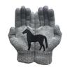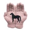 Unique Design: Featuring a creative black horse print split across both gloves, the design forms a complete and striking horse image when worn together. This minimalist yet eye-catching embellishment adds a fashionable touch to the solid color gloves, blending style with subtle elegance.