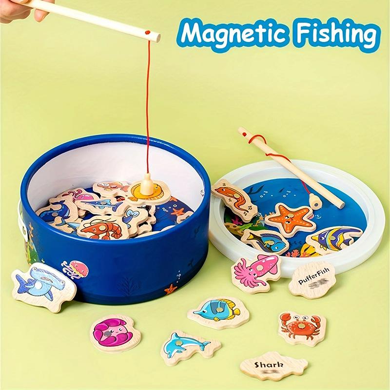 Category Montessori:Embrace Montessori learning with this wooden fishing toy that supports cognitive development.