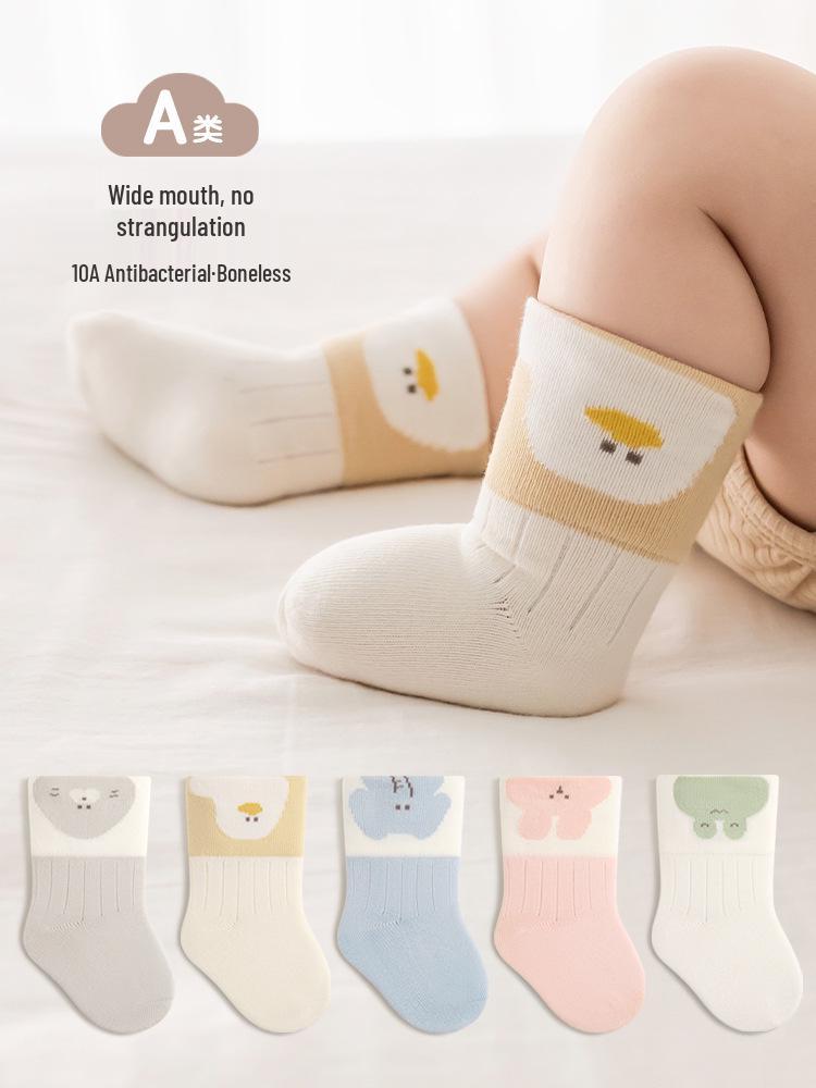 Karikatür Bebek Çorap: Yenidoğanlar İçin Yumuşak, Dikişsiz, Bol Manşetli Orta Boy Pamuklu