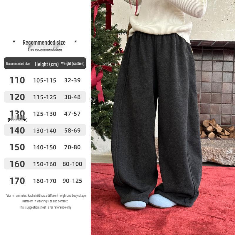 YOJIA Winter 2025 Loose Fit Girls' Plus Velvet Thick Pants