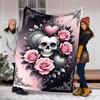 1pc Skull Roses Heart Decorative Outdoor Flannel Blanket , Machine Washable Perfect Gift for Birthday , Holiday Travel Accessory , Durable Material