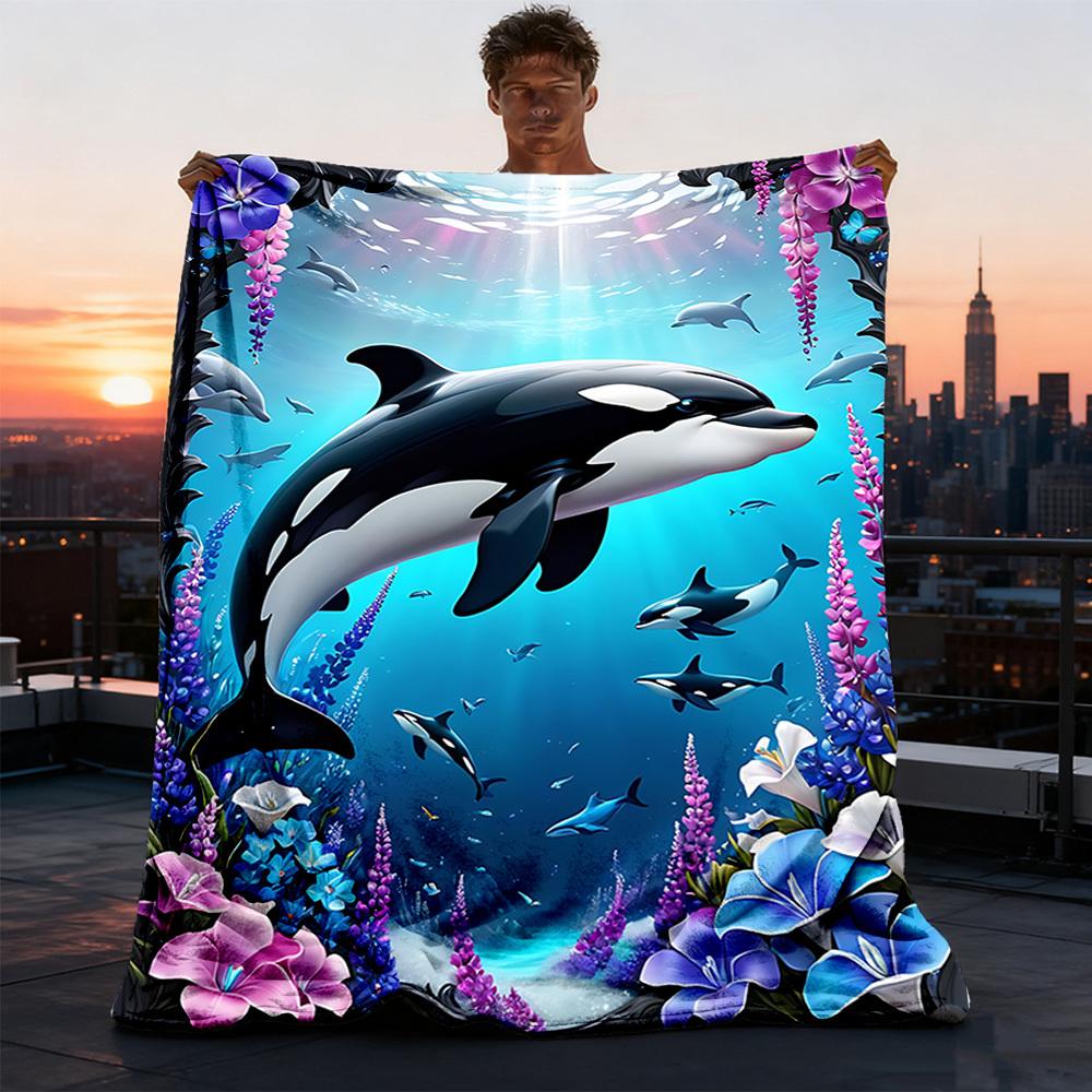 1pc Whale Marine Ocean Outdoor Flannel Blanket , Machine Washable Perfect Gift for Birthday , Holiday Travel Accessory , Durable Material