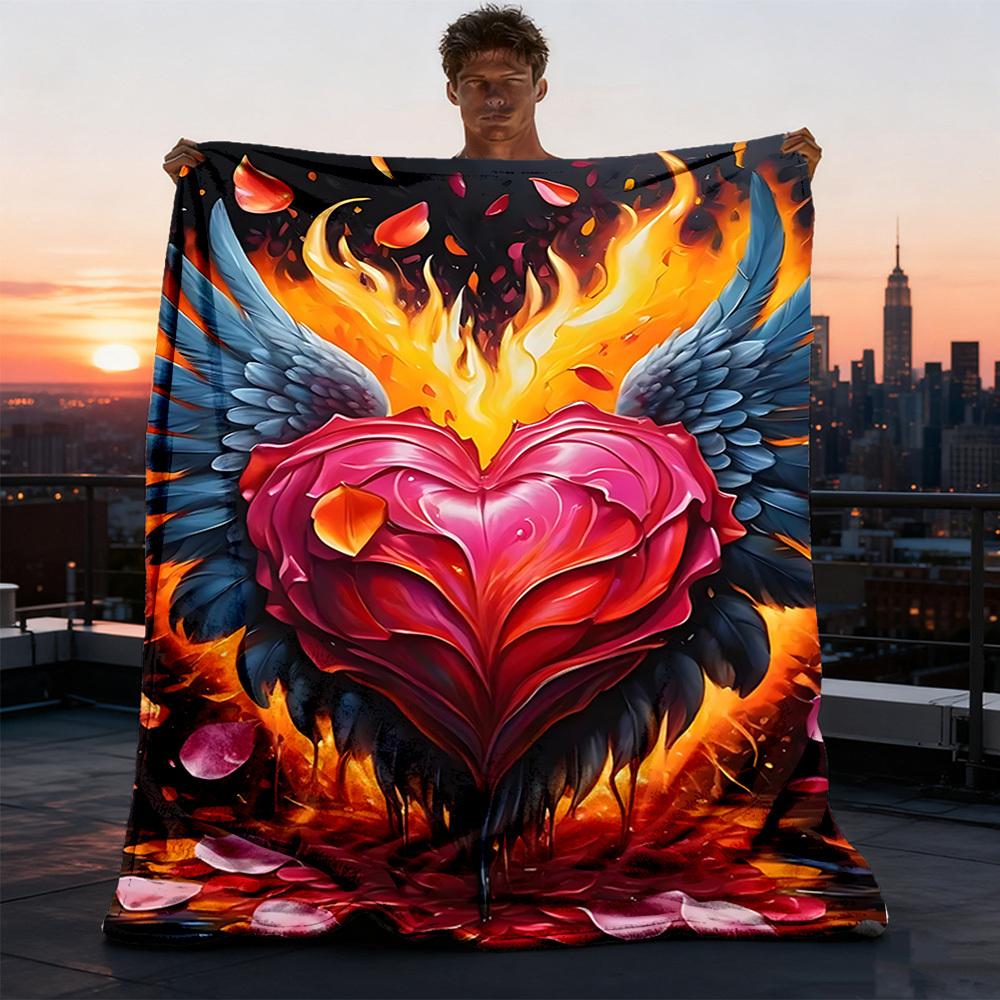 1pc Flaming Rose Wings Outdoor Flannel Blanket Soft All Season Polyester Throw , Perfect for Picnics & Travel , Picnic Accessory