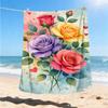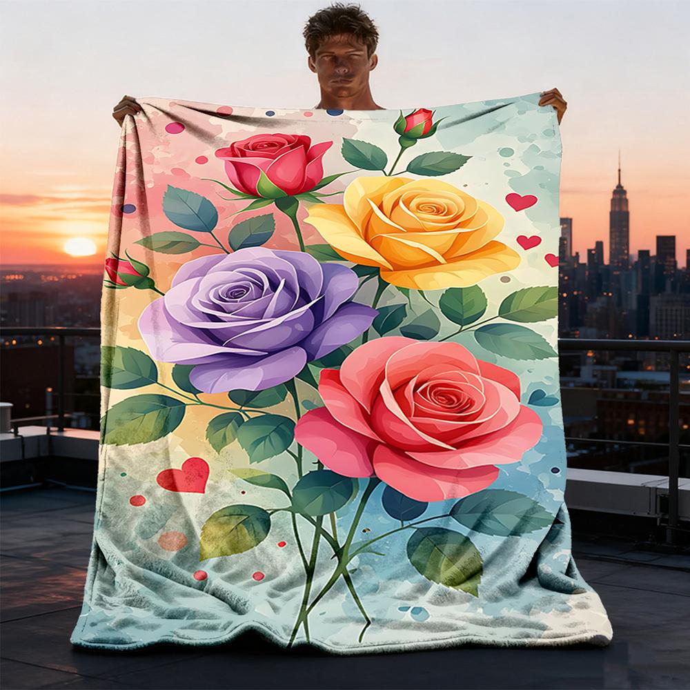 1pc Roses , Floral Outdoor Flannel Blanket Soft All Season Polyester Throw , Perfect for Picnics & Travel , Picnic Accessory