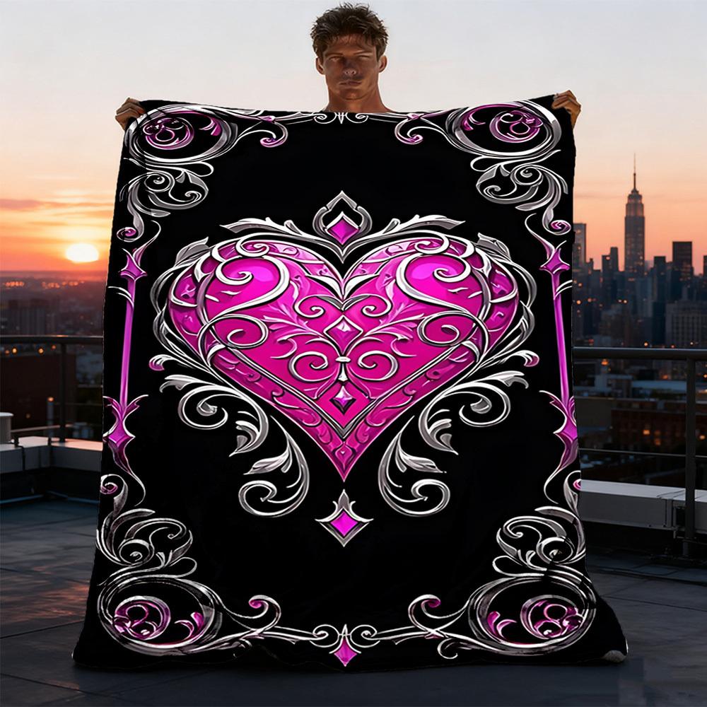 1pc Heart Ornament Outdoor Flannel Blanket Soft All Season Polyester Throw , Perfect for Picnics & Travel , Picnic Accessory