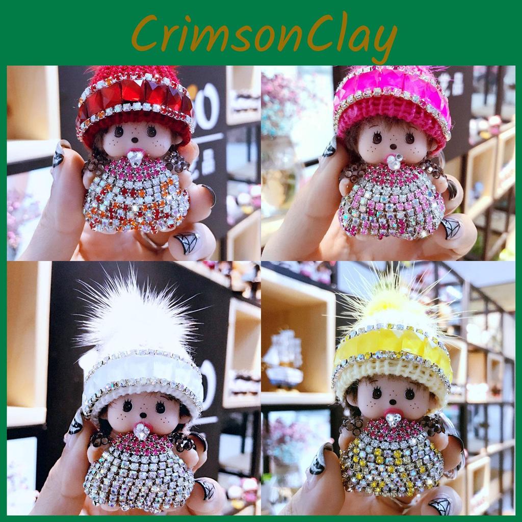 Crystal-studded Monchhichi Keychain Knit Hat Mink Pendant Arcade Prize Exchange Gift