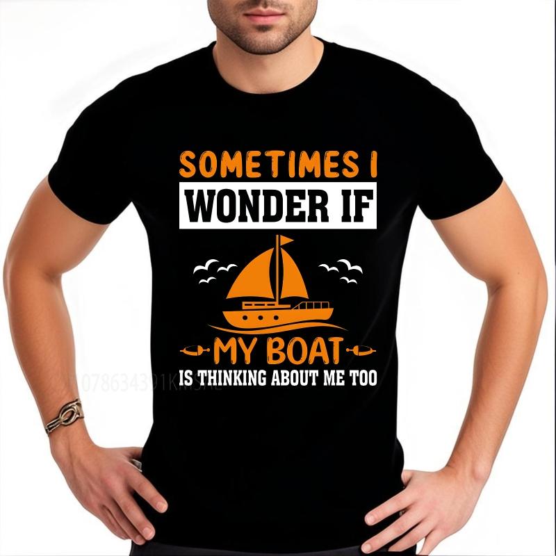 Daily Wear summer Men tshirt Sometimes I Wonder If My Boat Is Thinking About Me Too Short Sleeve Soft Oneck Tshirt
