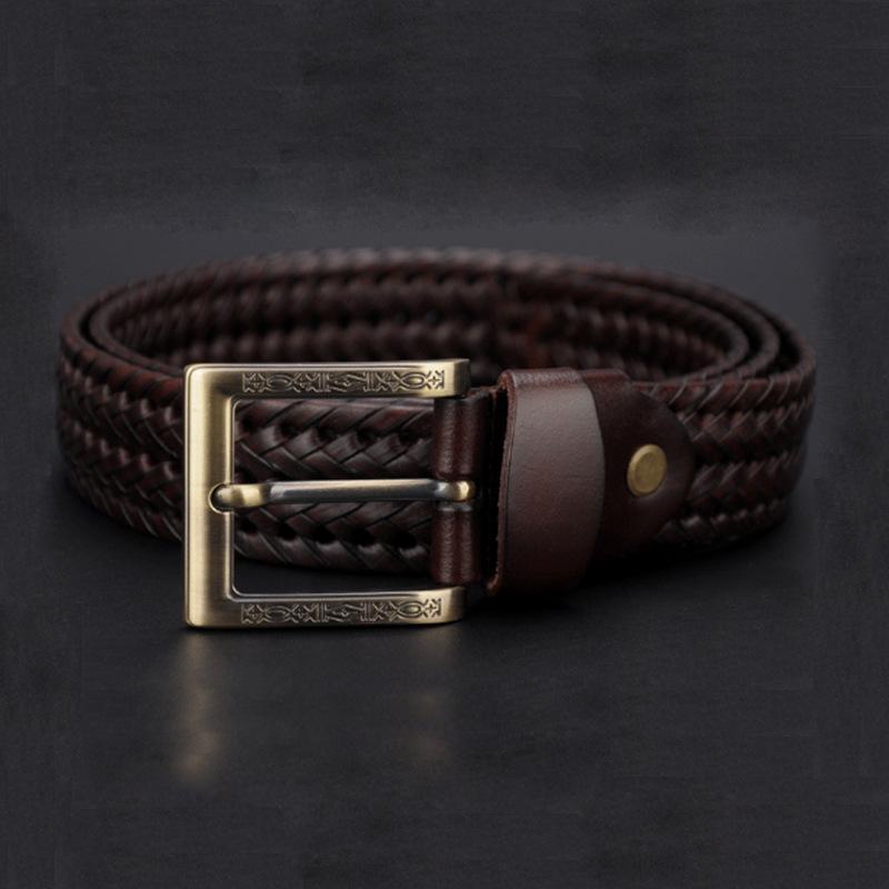 Belt Vintage first-layer cowhide woven men's belt, casual cowhide pin buckle belt