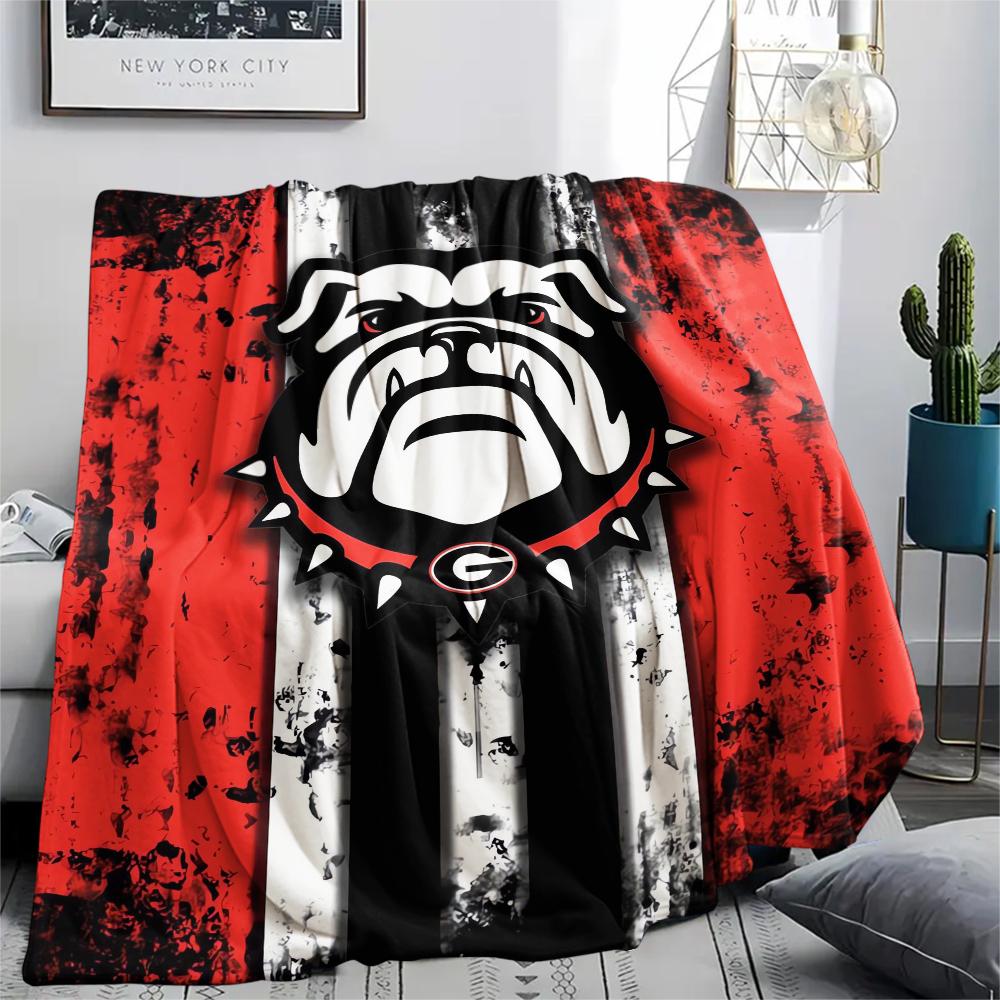 1Pc Georgia Bulldog Print Flannel Blanket, High quality Comfortable for All Seasons, Home Decor, Warmth and Comfort, Perfect for Gifts
