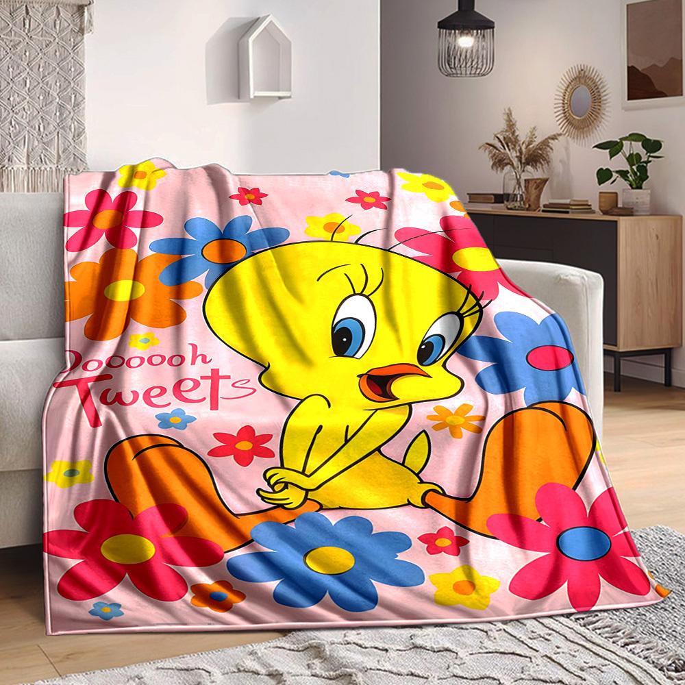 1pc Tweety Bird Blanket Lightweight Flannel Throw For Sofa, Bed, Travel, Camping, Livingroom, Office, Couch, Chair, And Bed
