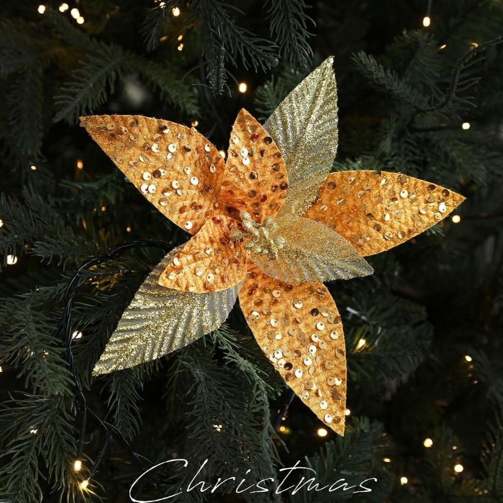 New 25CM Artificial Poinsettia Flower Glitter Sequins Simulation Flowers Sparkling Sequins Flower Christmas Decoration