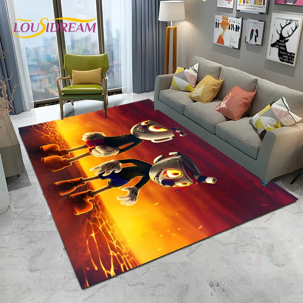3D Cuphead Mugman Oyunu Gamer HD Halı Kilim Ev Oturma Odası Yatak Odası Kanepe Paspas Dekor, çocuk Oyun Alanı Kilim kaymaz Zemin Mat