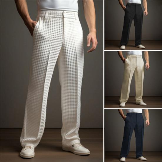 Men Waffle Dress Pants Casual Business Suit Trousers Wide Leg Trousers with Belt Loop for Office Dating Vacation Daily Wear