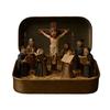 1/2Pcs Jesus Crucifixion Scene Set in Tin Box Handcrafted Pocket Size Miniature Jesus Resurrection Tin Resin Ornament Religious Decoration