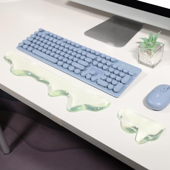 The non-slip silicone base firmly grips your desktop, preventing sliding or shifting during extended use. Featuring a unique wave design, the wrist rest supports proper wrist positioning, reducing pressure on elbows and shoulders while promoting air circulation to keep wrists dry and comfortable. Ideal for office workers, gamers, writers, and students, this stylish and functional set boosts comfort and productivity in any workspace.
