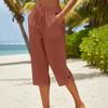 Women's -color Cotton And Linen Three-quarter Length Pants Features. 1. Made of high quality material, and suitable for your daily wear. 2. Elastic waist, high waist and casual design make it more design. 3. Casual wear, home wear, going out, vacation or beach wear. You can wear it for different purposes. 4. You can pair it with t-shirts, shirts, tank tops, camisoles or sports bras to create a comfortable and cute look.