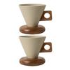 Vintage Kahve Kupası Seramik Konik Kupa Ahşap Saplı ve Tabaklı Stabil Çay Kupası Çay ve Kahve Severler İçin Eşsiz Hediye