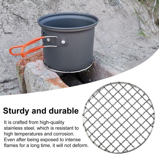 This foldable and portable barbecue network stand is an essential outdoor cooking accessory, perfect for hiking, camping, fishing, and picnics. Crafted from high-quality stainless steel, it offers excellent resistance to high temperatures, corrosion, and deformation from prolonged exposure to open flames. Its compact, detachable design allows easy storage in backpacks or pot sets without occupying much space.