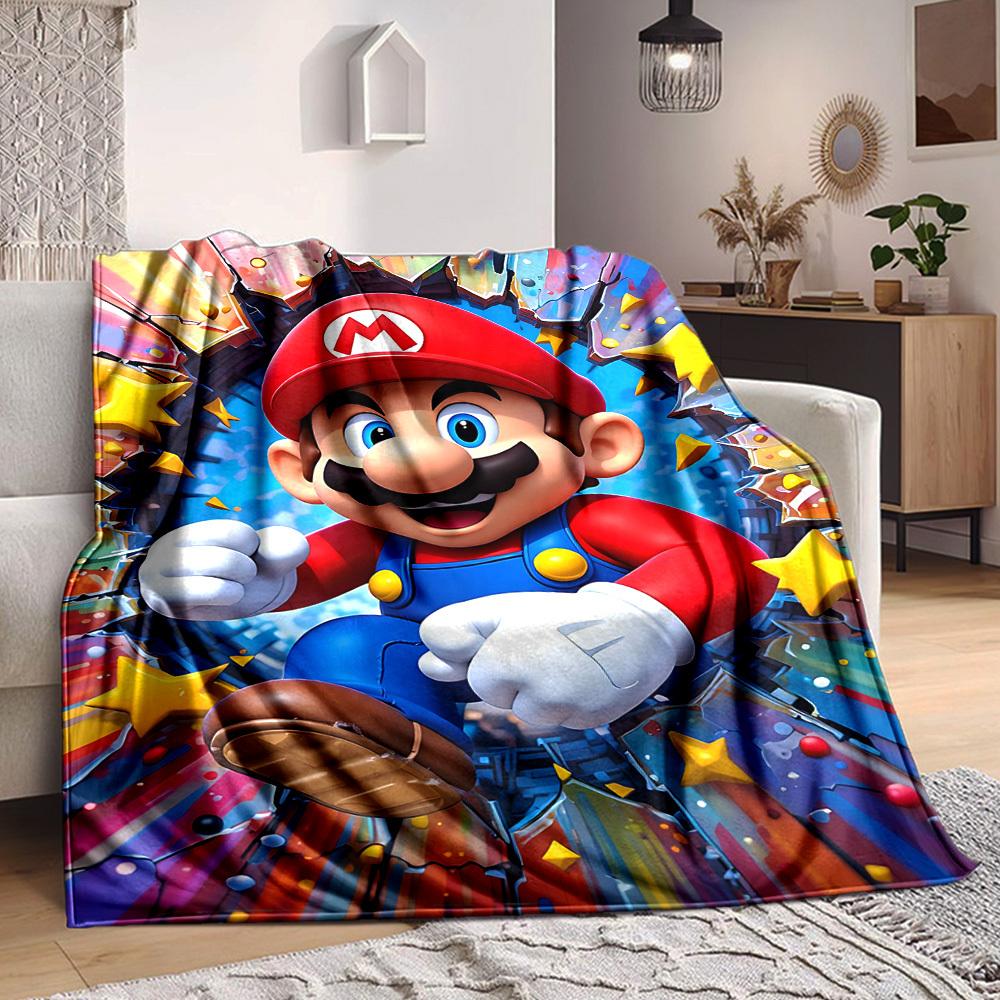 1pc Mario Adventure Flannel Blanket, Soft Skin Friendly with Digital Printing, Various Sizes Available for Family, Friends, Birthday