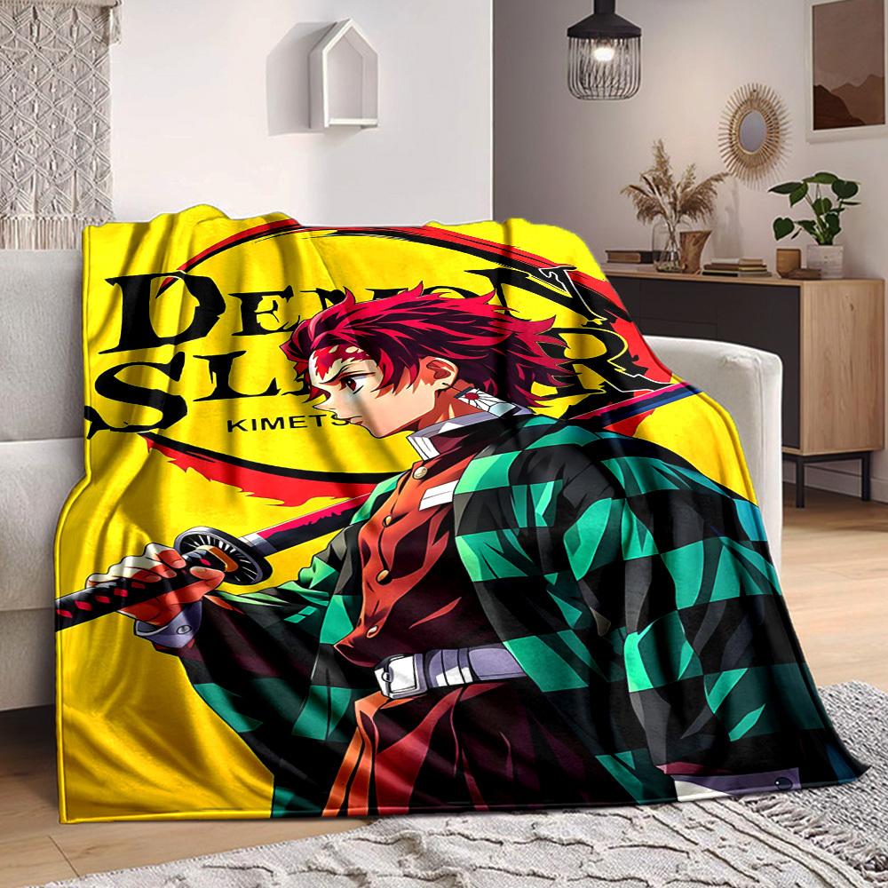 1pc Demon Slayer Flannel Throw Blanket HD Printed Lightweight Soft Warm All Season Blanket for Sofa, Bed, Travel, Camping Machine Washable
