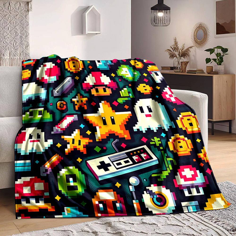 1pc Gaming PixelArt Flannel Throw Blanket HD Printed Lightweight Soft Warm All Season Blanket for Sofa, Bed, Travel, Camping Machine Washable