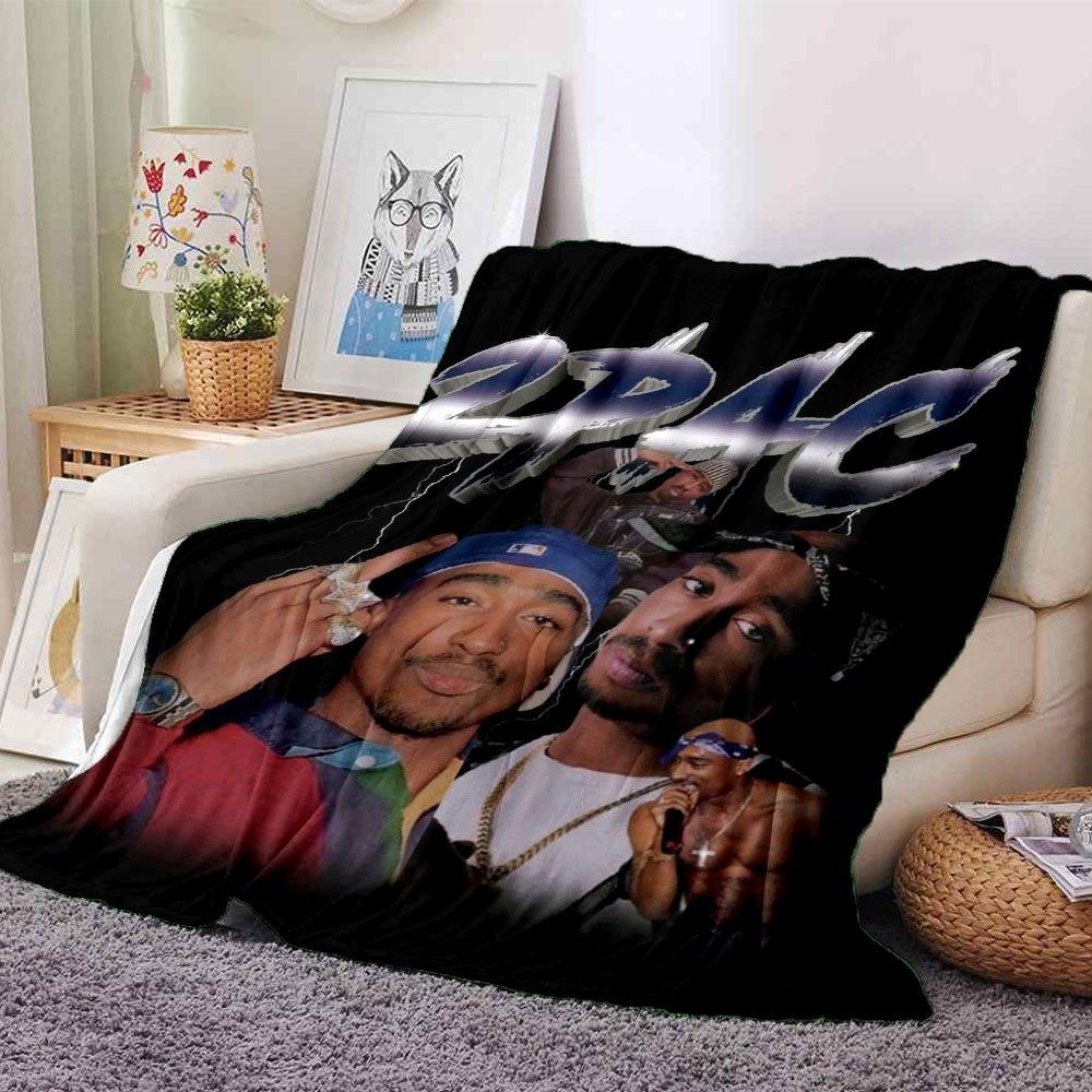 1pc 2PacHip Hop Blanket Soft Lightweight All Season Multi Purpose Throw for Sofa, Bed, Office & Picnics, French Style with Iconic Album Art & Quotes