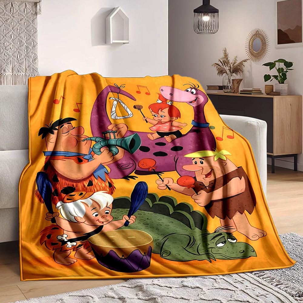 1pc Flintstones Flannel Throw Blanket HD Printed Lightweight Soft Warm All Season Blanket for Sofa, Bed, Travel, Camping Machine Washable