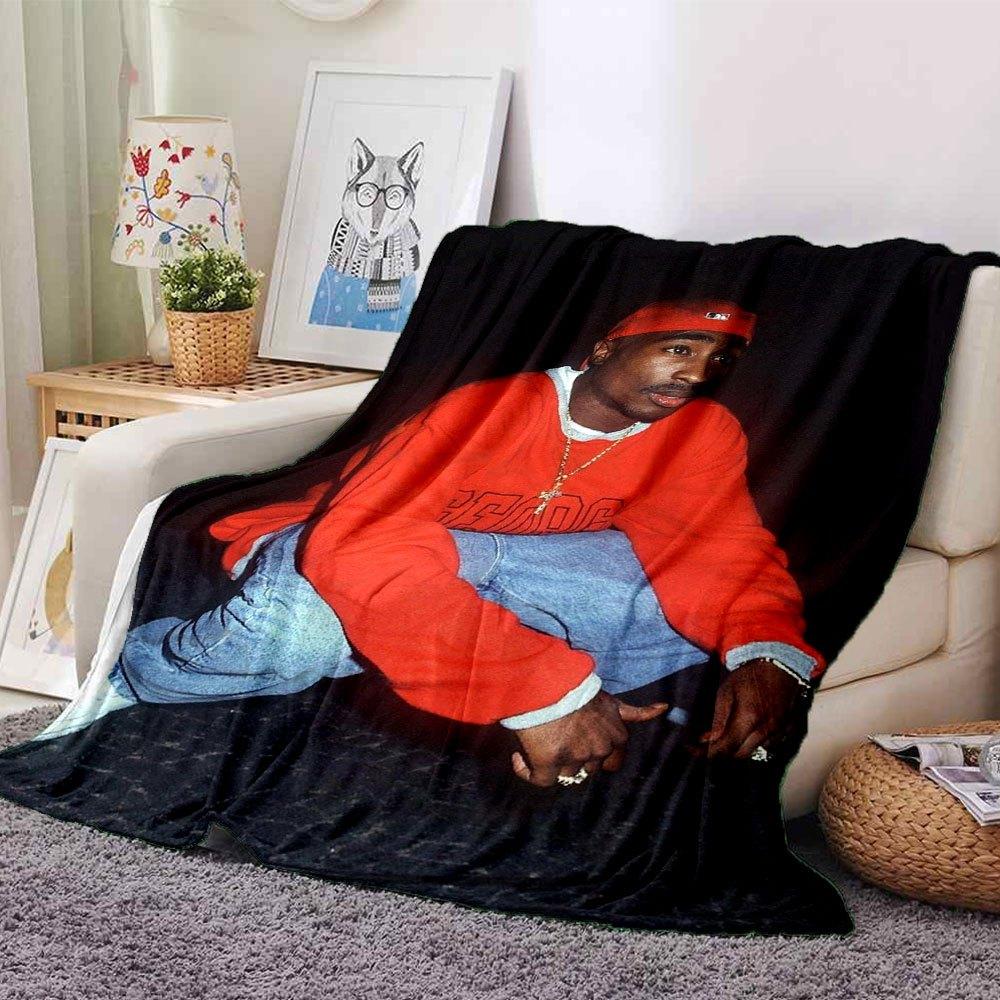 1pc 2PacHip Hop Blanket Soft Lightweight All Season Multi Purpose Throw for Sofa, Bed, Office & Picnics, French Style with Iconic Album Art & Quotes