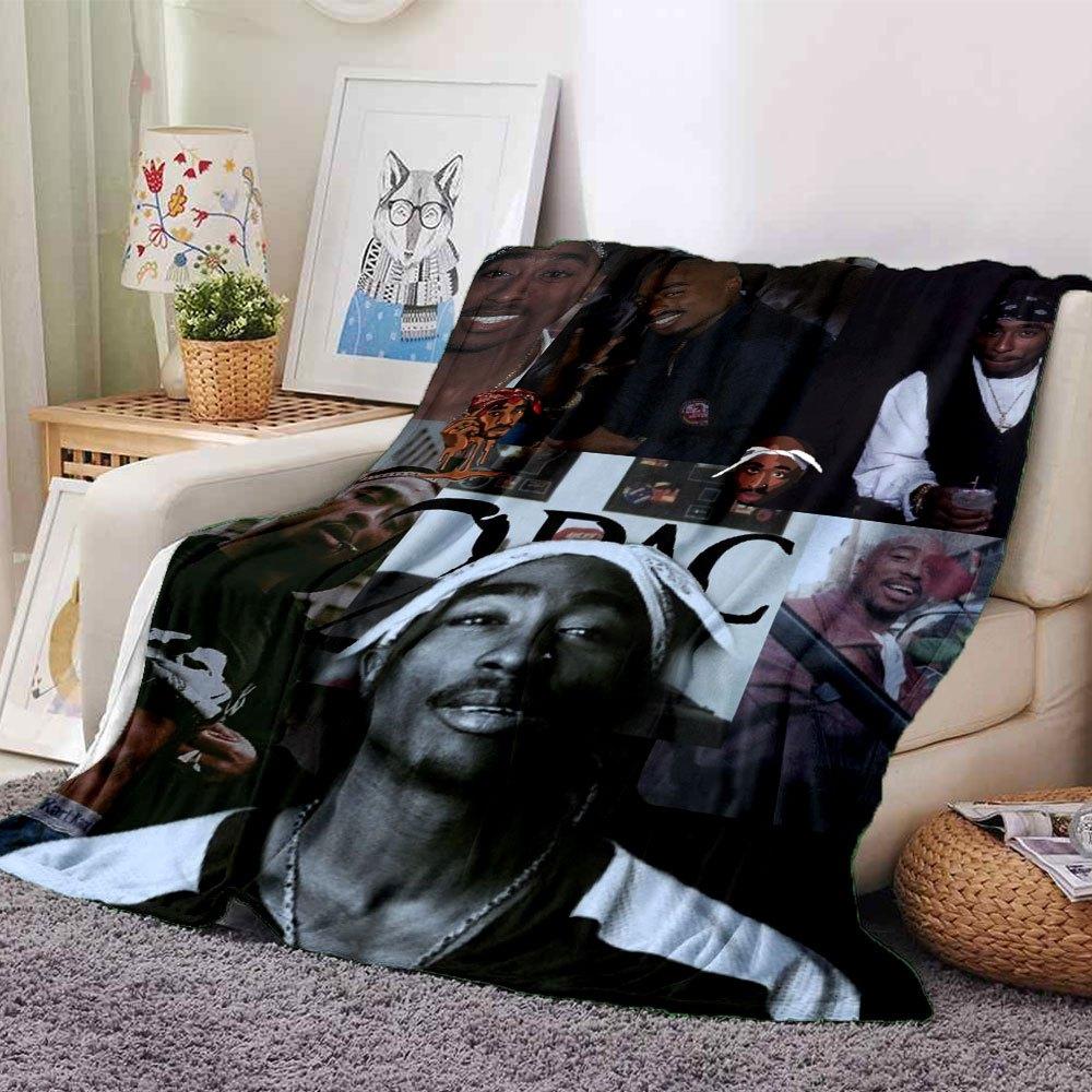 1pc 2PacHip Hop Blanket Soft Lightweight All Season Multi Purpose Throw for Sofa, Bed, Office & Picnics, French Style with Iconic Album Art & Quotes