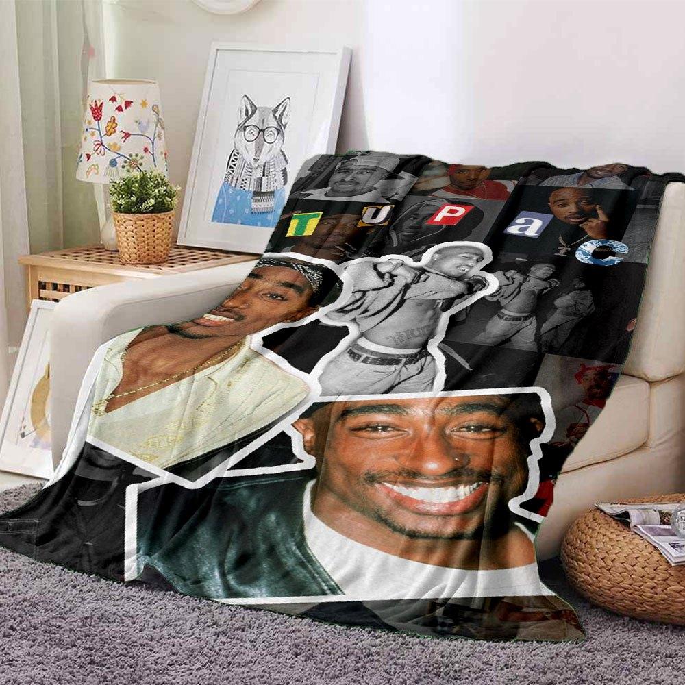 1pc 2PacHip Hop Blanket Soft Lightweight All Season Multi Purpose Throw for Sofa, Bed, Office & Picnics, French Style with Iconic Album Art & Quotes