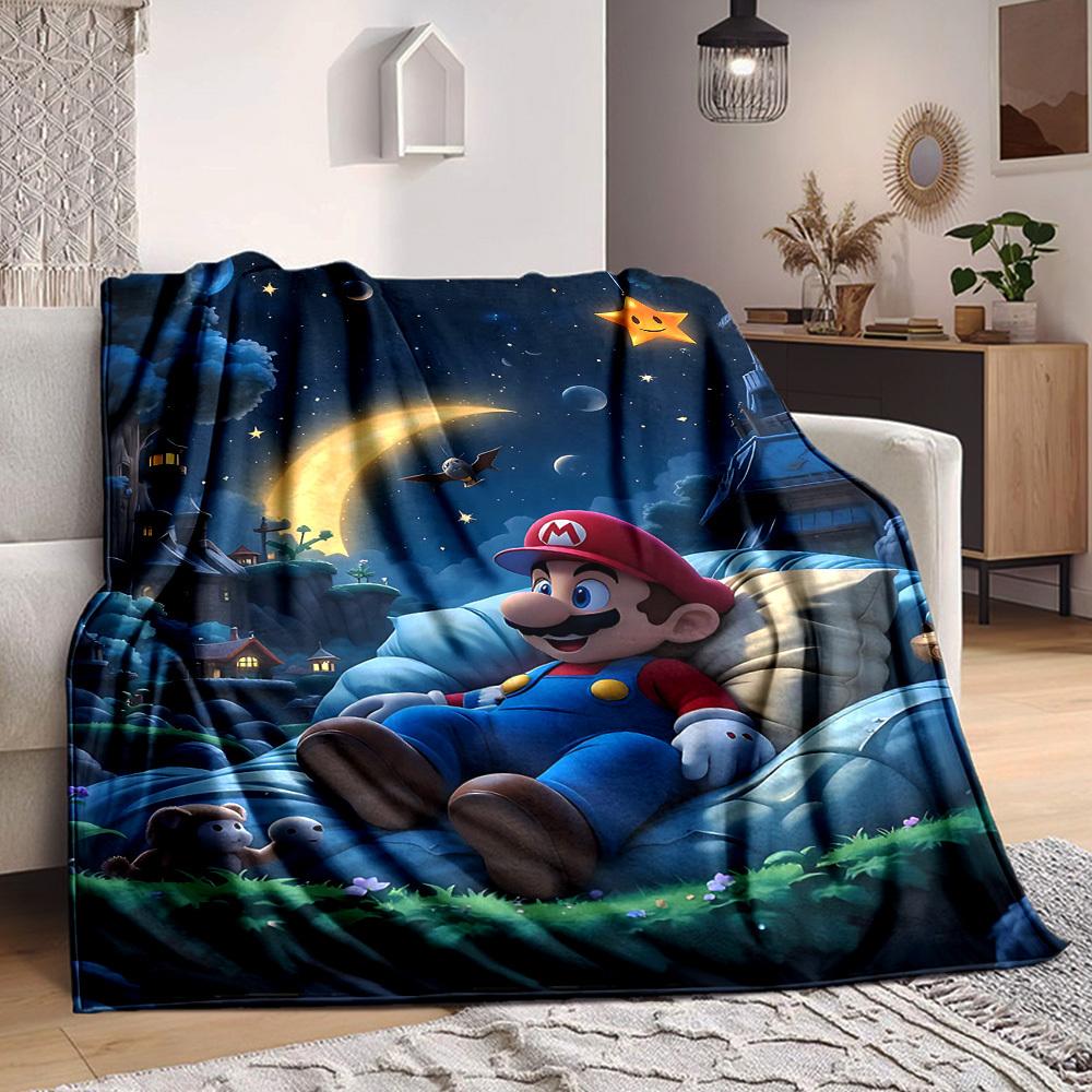 1pc Mario Night Dream Cozy Print Blanket Lightweight Warm Flannel Throw Blanket For Sofa, Bed, Living Room