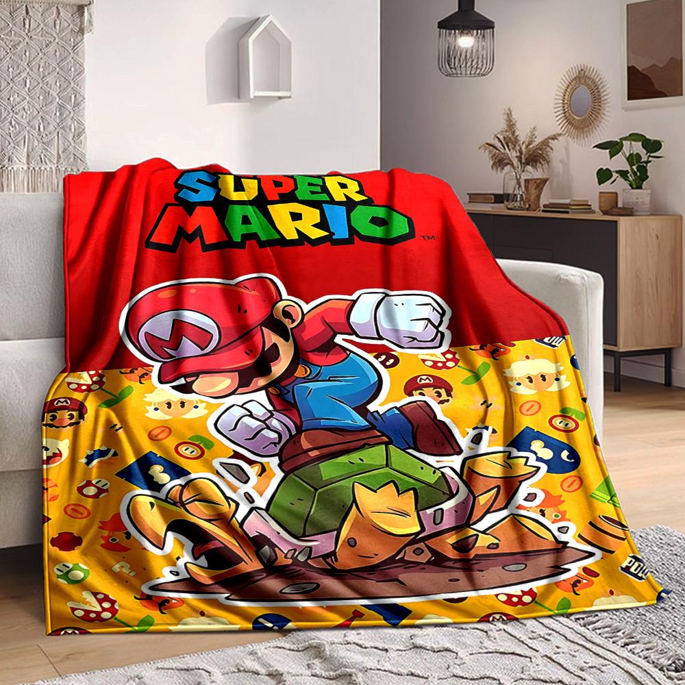 1pc Mario Adventure Cozy Print Blanket Lightweight Warm Flannel Throw Blanket For Sofa, Bed, Living Room