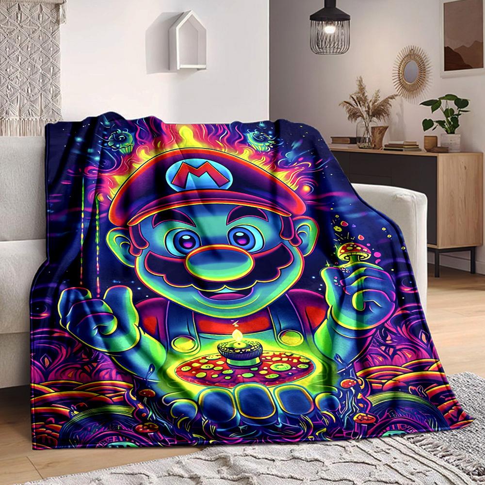 1pc Psychedelic Mario Flannel Blanket, Soft Skin Friendly with Digital Printing, Various Sizes Available for Family, Friends, Birthday