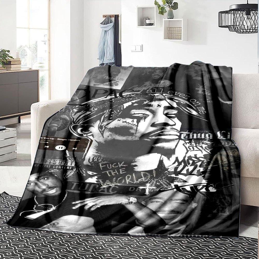 1pc 2Pac Hip Hop Blanket Soft Lightweight All Season Multi Purpose Throw for Sofa, Bed, Office & Picnics, French Style with Iconic Album Art & Quotes