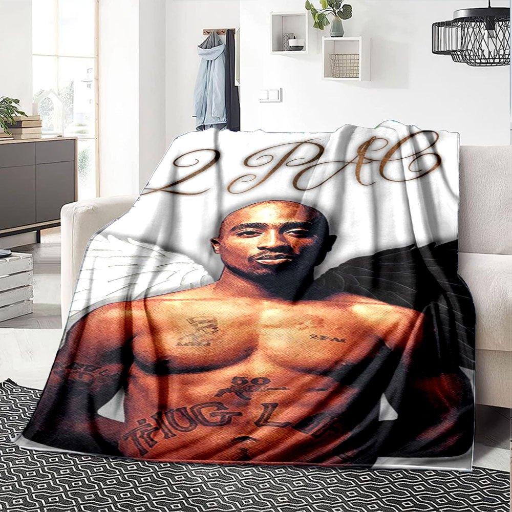 1pc 2Pac Hip Hop Blanket Soft Lightweight All Season Multi Purpose Throw for Sofa, Bed, Office & Picnics, French Style with Iconic Album Art & Quotes