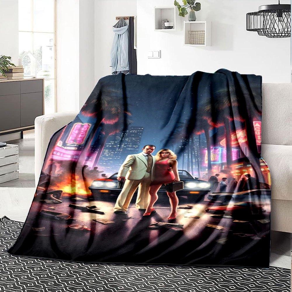 1pc Grand Theft Auto Soft Flannel Blanket with Designer Print A cozy blanket for all seasons, perfect for the couch, bed, office