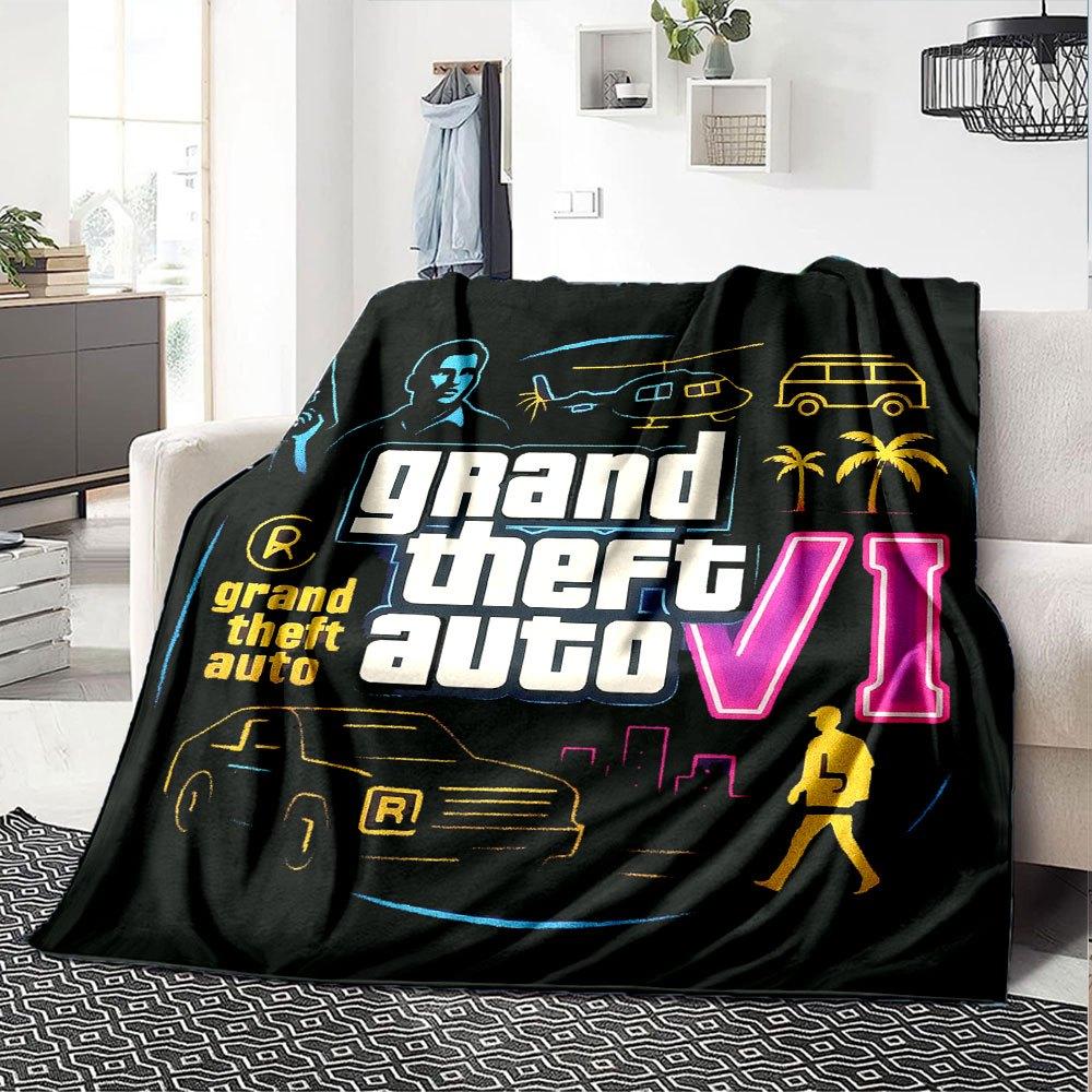 1pc Grand Theft Auto Soft Flannel Blanket with Designer Print A cozy blanket for all seasons, perfect for the couch, bed, office