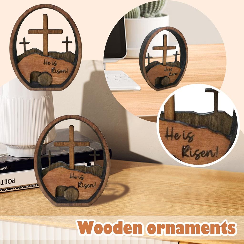 Easter Decoration He Is Risen Wooden Easter Resurrection Scene Cross Tomb Tray Set Easter Decor Centerpiece For Religious Home Table