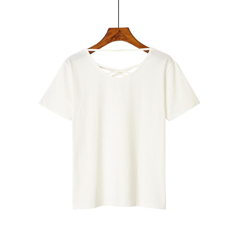 Summer ice porcelain cotton short-sleeved careful machine top design sense back cross with sexy simple T-shirt women