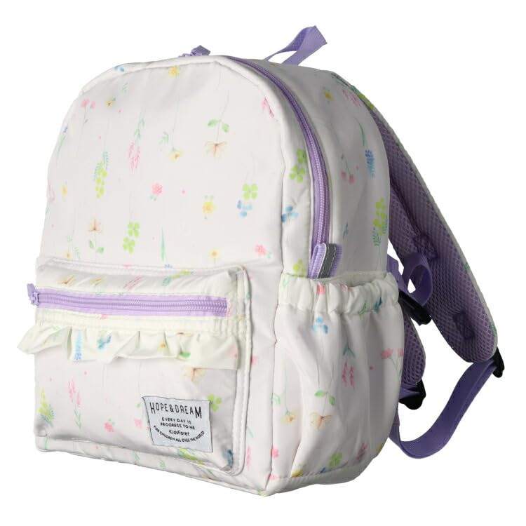 This backpack features a bonded padding that's incredibly soft and vibrant with vibrant patterns, making it a popular choice every season. It's available in four patterns: floral, rabbit, dinosaur, and industrial vehicle. It's lightweight and easy for even children to carry! It's water-repellent, and features a front fastener to prevent the shoulder straps from slipping off. The back is made of air mesh, making it soft against the skin and breathable. It also has pockets on the front and both sides, and a name tag in the inner pocket. [Items] Casual, stylish, cool, cute, everyday wear, daily wear, outings, children, boys, kids, baby sizes, toddler sizes, kindergarten, nursery school, elementary school, commuting, elementary school, field trips, travel, 2025 Spring/Summer new arrivals from Marutaka Clothing, accessories, girls, girls, Kids Foret backpacks, floral, off-white, white, pink, rabbit, animal, green, dinosaur, blue, construction vehicle, police car, fire engine.
