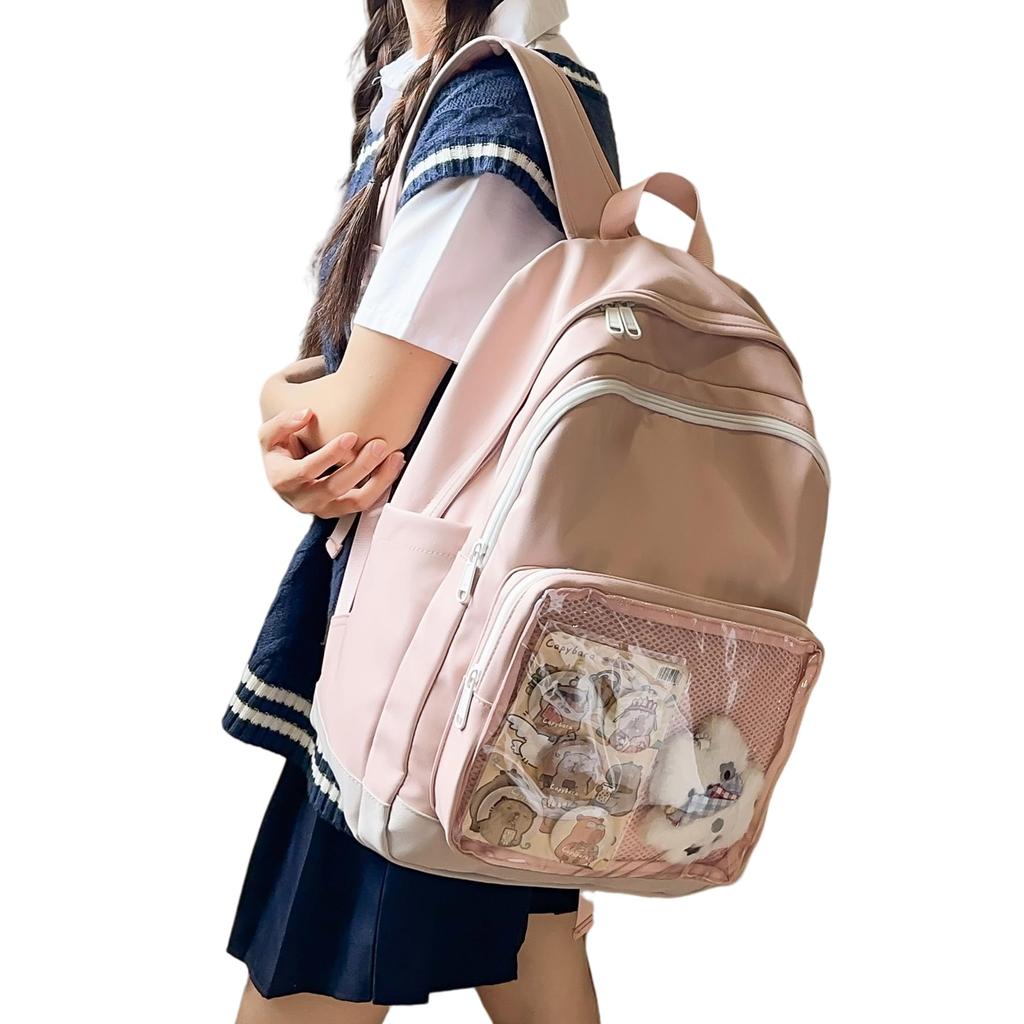 ZESU Ita Large Korean PVC Perfect for Elementary and High School Students Women's Bag, Capacity, Style, Girls' Backpack, Backpack, Transparent,