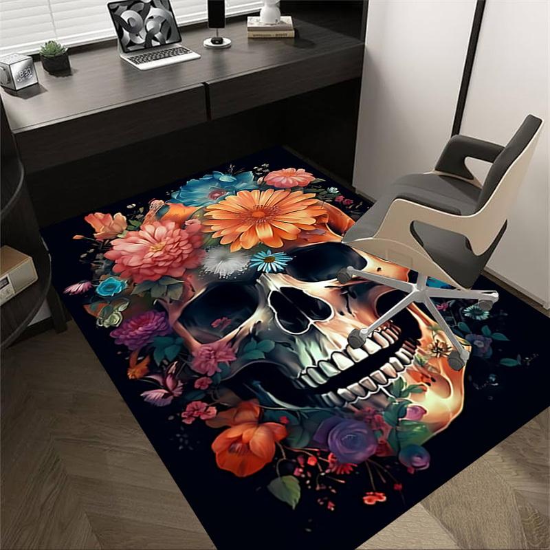1PC Skull Flowers Carpet Ultra Soft, Thick & Absorbent, Non Slip Machine Washable Mat for Entryway