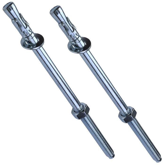 Goujon d’ancrage aerzetix - set de 2 - vis d’ancrage filetage long - m12x240mm - acier zingué