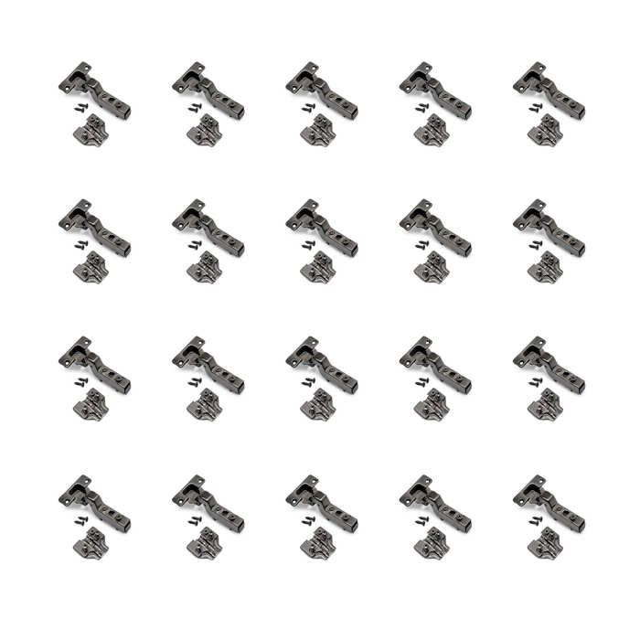 Emuca lot de 20 charnières super coudées x91 à fermeture amortie et embases euro, hauteur 0, acier, titane