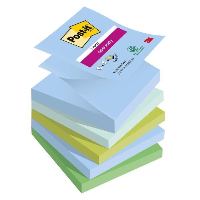 Notes adhésives - post-it - z-notes couleurs oasis - 76 x 76 mm - lot de 10 - super sticky