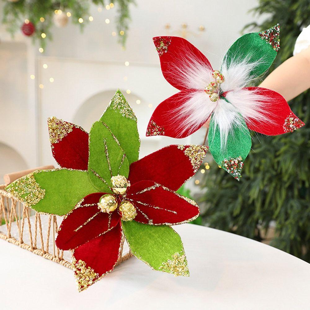 Cloth Glitter Christmas Flower Soft 32cm Flower Ornament Festival Party Supplies Large Size Flower Ornaments