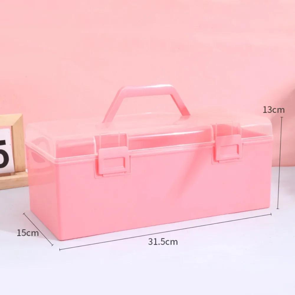 Plastic Clear Storage Box with Handle Desktop Organizer Plastic Storage Case Clear Marker Pen Storage Holder Stationery Storage