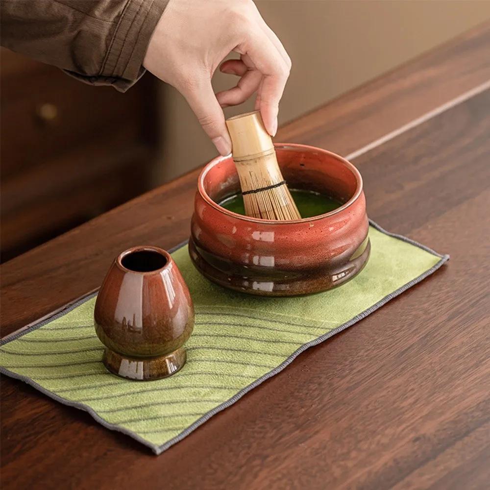 4PCS Ceramic Bamboo Japanese Matcha Tea Set Matcha Bowl Matcha Whisk Holder Matcha Making Kit Reusable Whisk Teaspoon Tea Sets