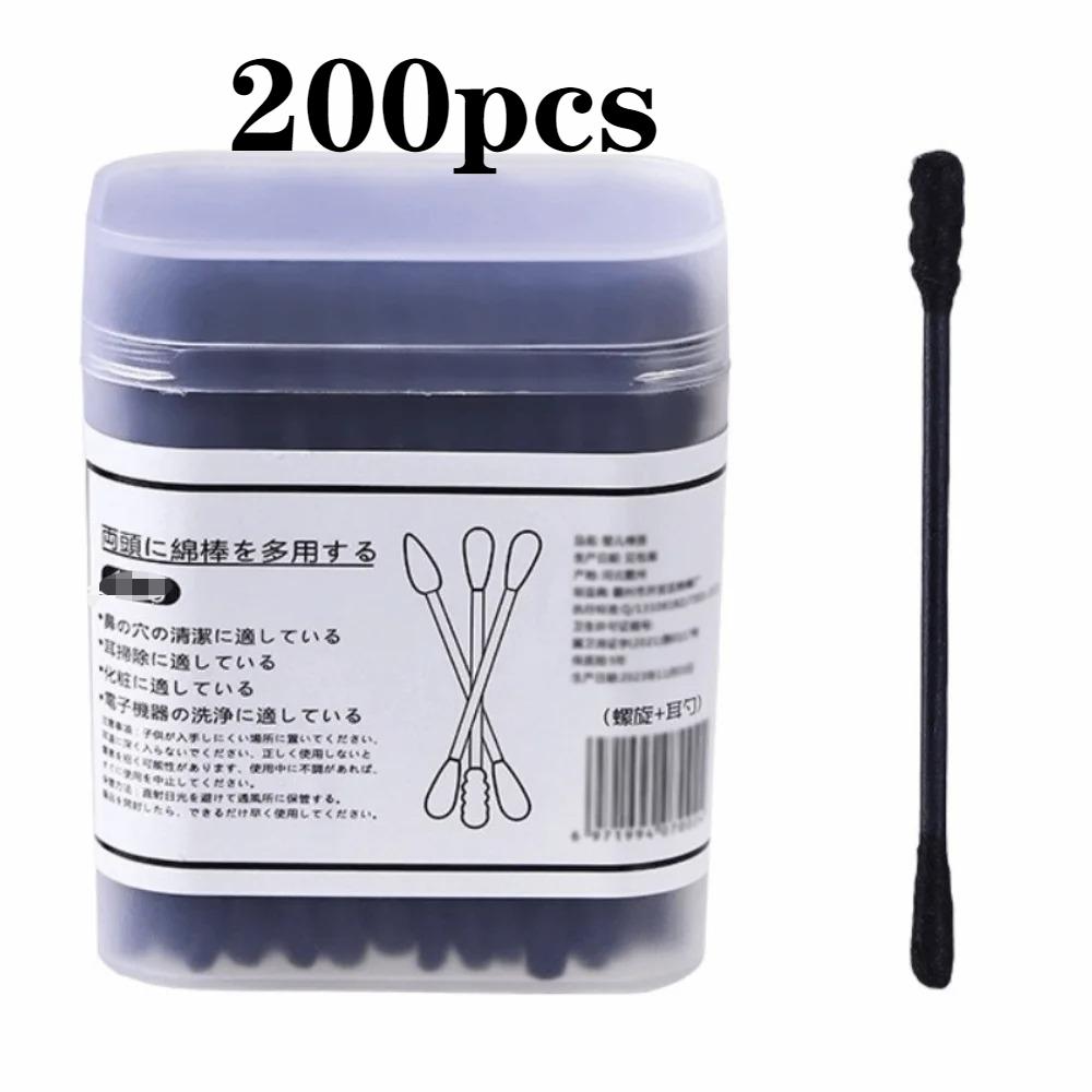 200pcs Black Cotton Swabs Earpick Disposable Double-ended Cotton Swabs Spiral Ear Cleaner Black Double Heads